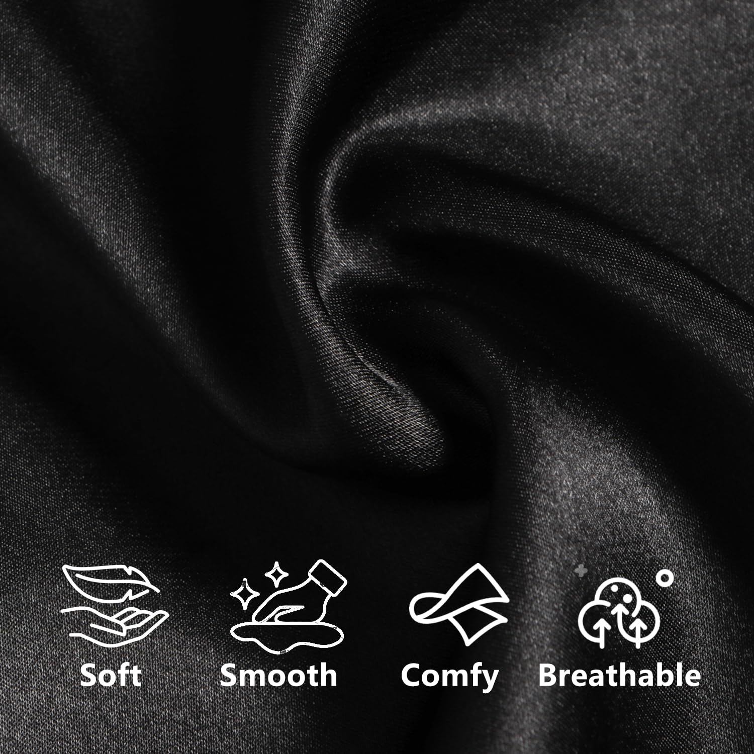 Black Teemie Women's Satin Robe Short Kimono Bathrobes Bride Bridesmaid Wedding Party Robes Sleepwear with Pockets
